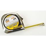 Tired of scratching figures down and trying to read those little black lines on your tape measure . . . then the E-Z Read measuring tape is just for you! It's virtually fool proof. Gives you numerical readouts down to every 1/8"! Tape is marked in foot and 12" increments in a black box, foot/inch increments in red, 1" increments, 1/8" numerical readouts and stud markings in red every 16". Features a sliding end hook for true zero measurement, nail slot for drawing circles, groove for measuring on string or wire, sliding lock, a cushioned blade return, and belt clip. Measures up to 25 feet.